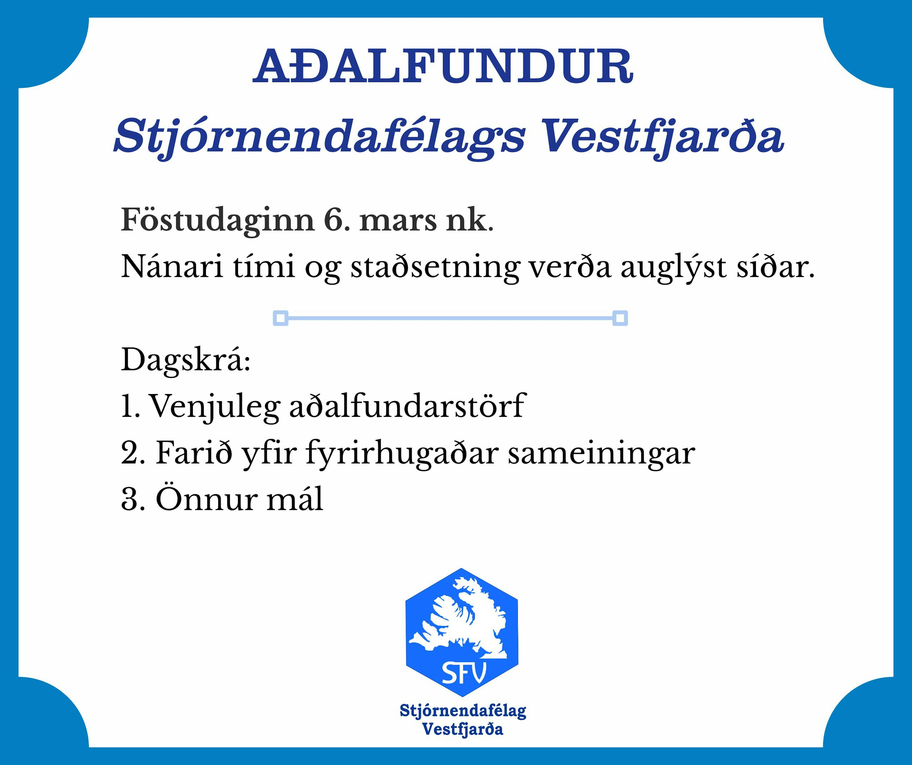 Stjórnendafélag Vestfjarða er stéttarfélag sem stendur vörð um hagsmunni fólks í stjórnendastöðu og einyrkja sem starfa sjálfstætt á Vestfjörðum. Markmið er að tryggja sanngjörn réttindi og velferð félagsmanna, og skapa sterkt samfélag stjórnenda á Vestfjörðum. Með því að sameina krafta félagsmanna getum við miðlað þekkingu, deilt reynslu og stutt við þróun atvinnulífsins á svæðinu. Við leggjum áherslu á að tryggja að félagsmenn fái fullnægjandi réttindi og þjónustu, hvort sem það er varðandi laun, vinnuumhverfi eða faglegan stuðning.